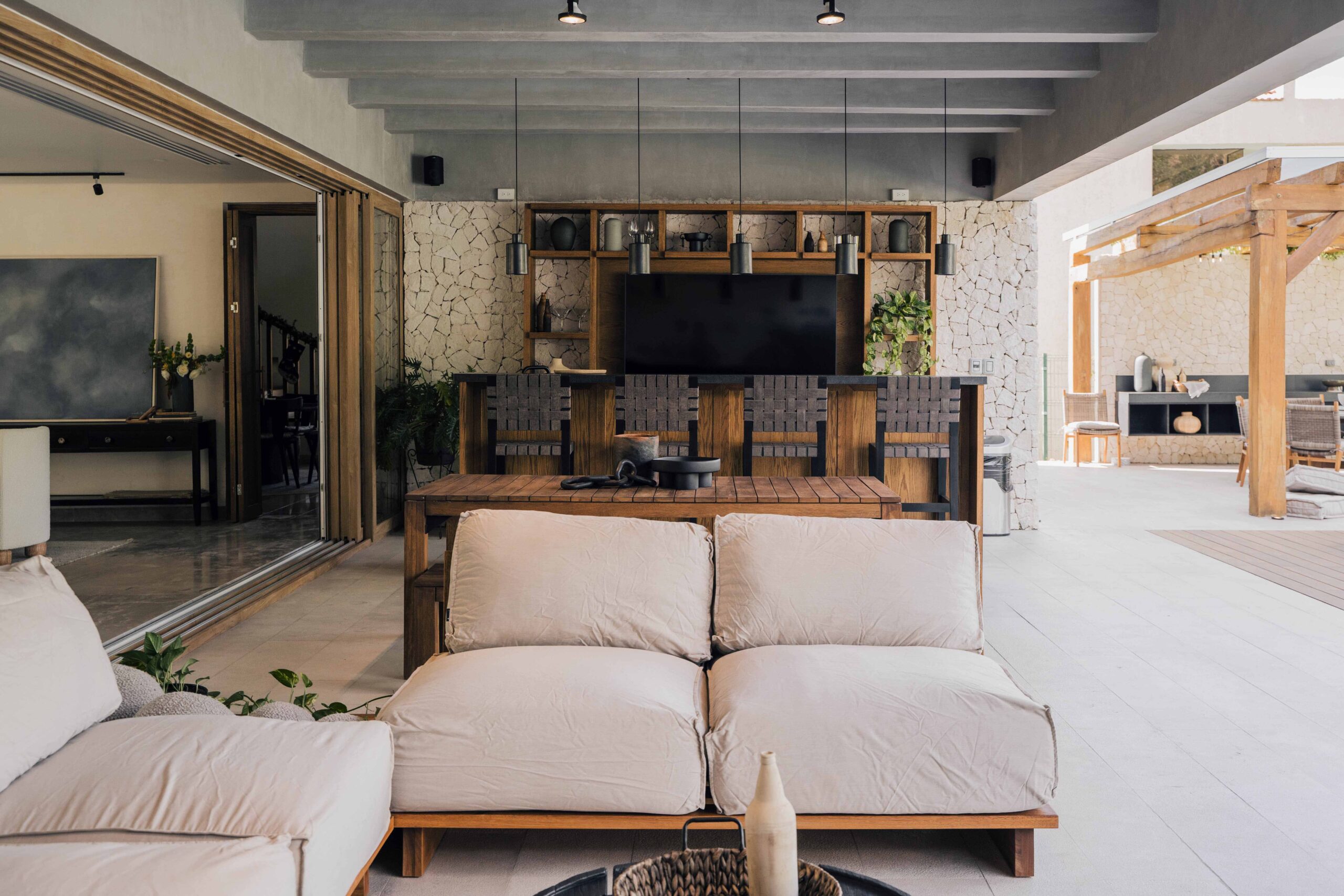 Sin duda alguna, este proyecto destaca los volúmenes sólidos en un ambiente paradisíaco que alberga vegetación tropical, sin embargo, aunque los elementos podrían parecer demasiado si los fusionamos, la realidad es que con materiales en matices neutros, cada detalle luce único.