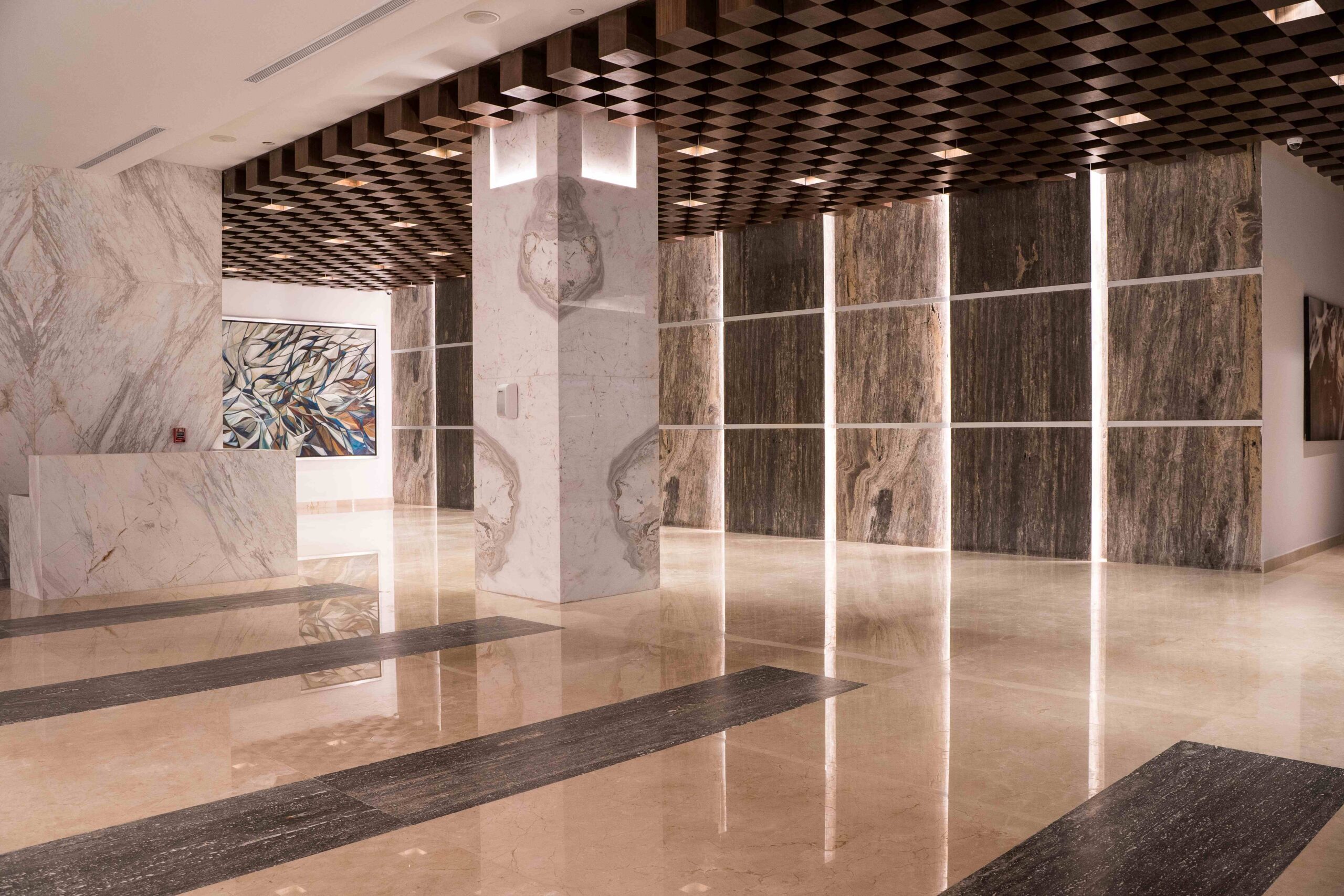 La propuesta de interiorismo de @vau_studio mezcla lujo y sofisticación en un espacio tan importante como la sala de estar, que impone fuerza y personalidad. Además, los muebles van acorde al estilo del lugar y complementan perfecto el muro, ¡Un bookmatch perfecto para impresionar a los invitados!