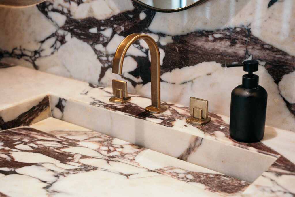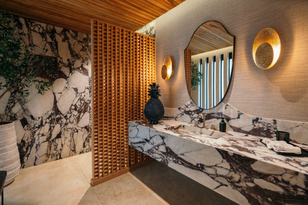 Estas propuestas hacen uso del mismo material, en un espacio para el mismo uso pero cada uno tiene un interiorismo muy diferente, esto demuestra la versatilidad del Mármol Sahara Noir para diferentes estilos. ¿Cuál es tu favorito?
