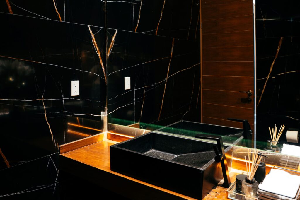 El mármol negro siempre será sinónimo de lujo y exclusividad, por lo que los muros y cubiertas son espacios ideales para robar la atención de tus visitantes.