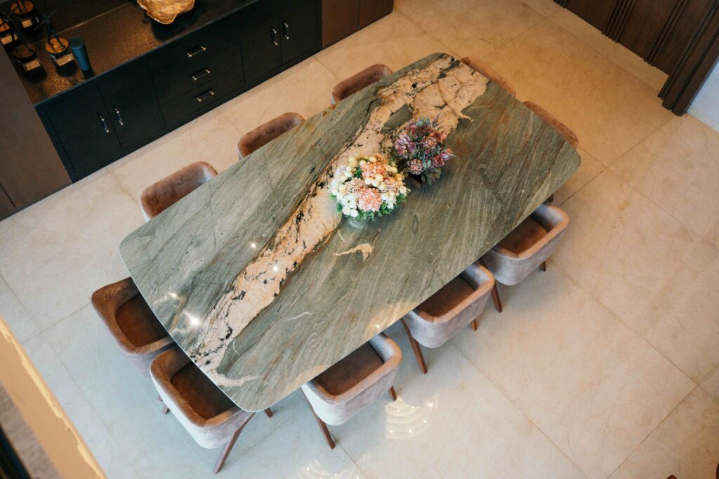 Si eres de las personas que disfrutan los colores vibrantes y diseños fuera de lo común, la Cuarcita Cristallo de Mare te encantará, tiene una apariencia exótica e impresionante, por lo que es muy utilizada en mesas de comedor.